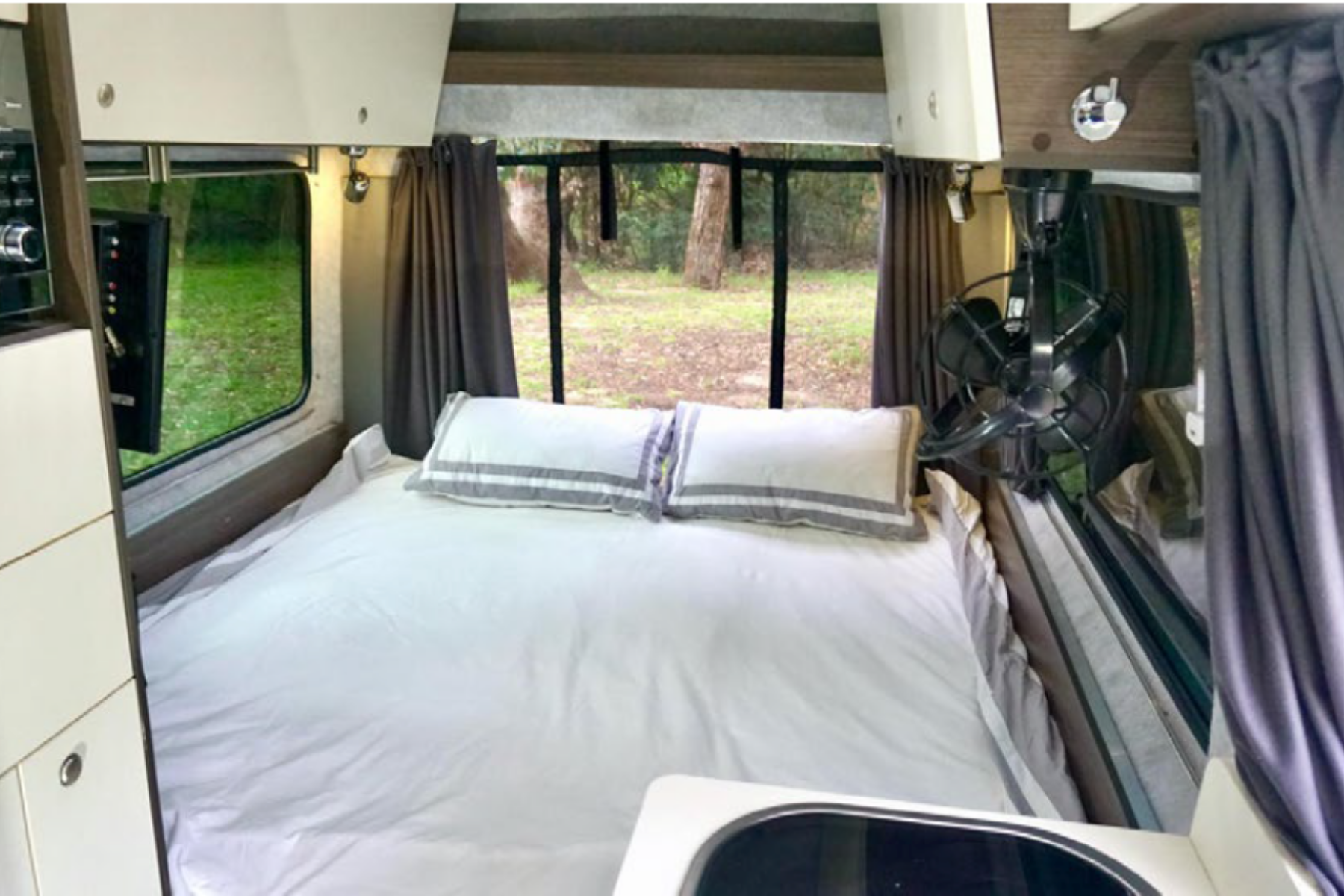 Campervan and Motorhome design always involves compromises, especially in smaller vans, and nowhere more-so than in the bedding, lounge and storage departments. We found ourselves chasing some Holy Grails: not having to make-up the bed each night (we still enjoy traditional sheets, blankets and a doona!) and maintaining a dining area while providing storage space for bulky items.